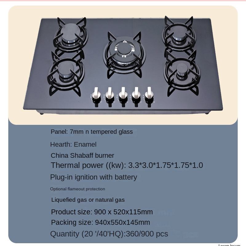 Luxury 5-Burner Gas Stove Glass Induction Hob Easy Cleaning Built-In Electric USB Manufacturer's Promotional Kitchen Outdoor