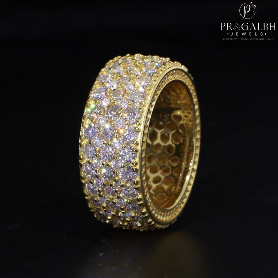 Luxury 5 Layer Moissanite Ring Band for Women Sparkling Statement Wide Band Ring with Multiple Rows of Round Cut Stones