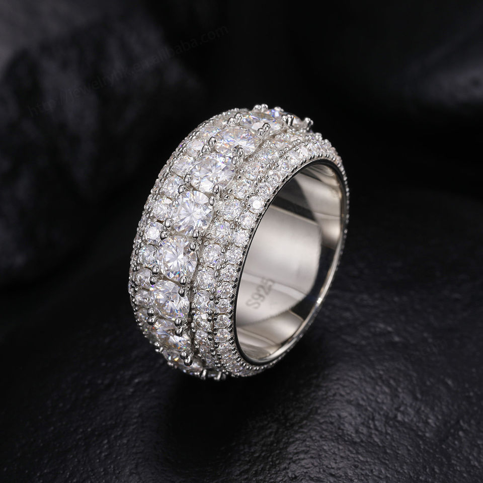 Luxury 5-Row Diamond Ring 925 Sterling Silver Gold Plated Hip Hop Style Forever Star Shiny High-End Jewelry Men Women Wedding