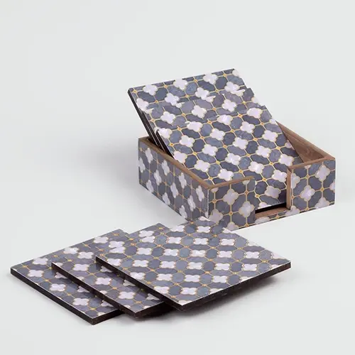 Luxury 6-Piece Set of Handcrafted Modern Rectangle Eco-Friendly Wooden Tea & Coffee Cup Mats & Pads Handmade Luxury Coasters