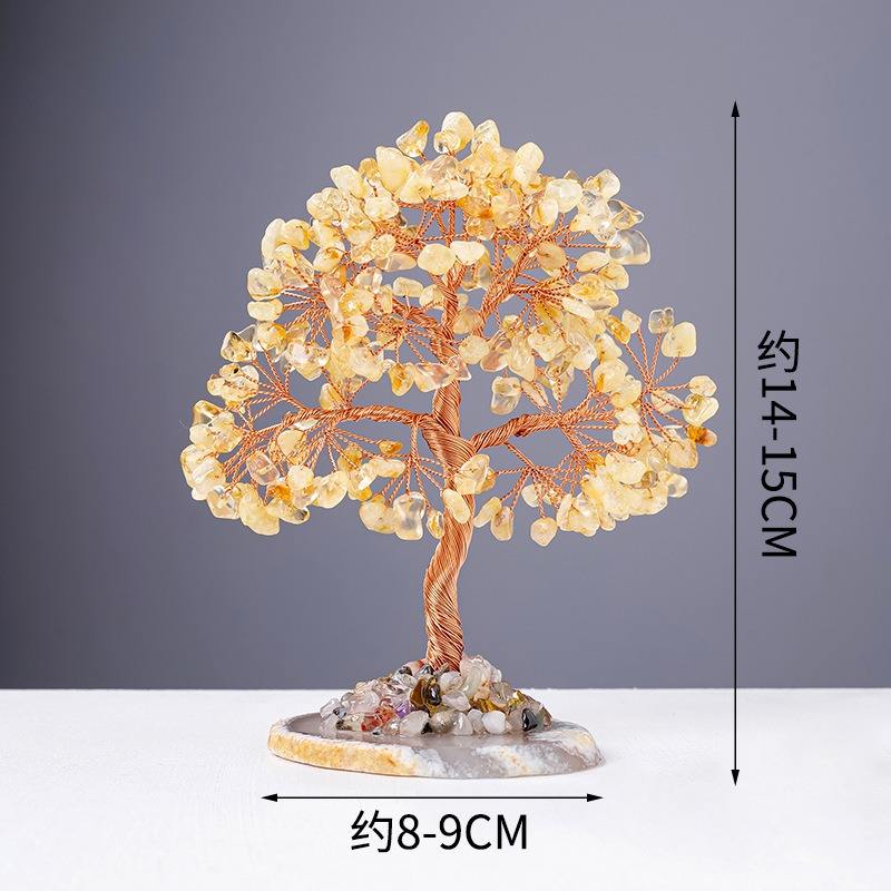 Luxury 7 Chakra Aquamarine Natural Healing Stones Crystal Tree on Agate Base Bonsai Rose Quartz Feng Shui Life Tree for Luck