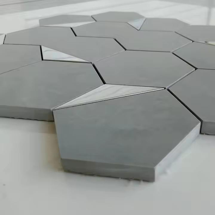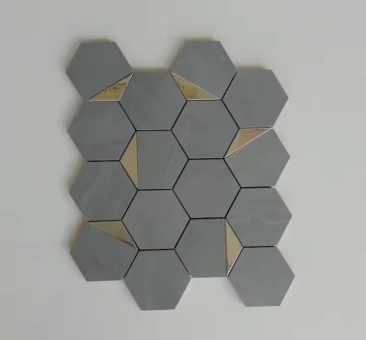 Luxury 73mm Silver PVD Hexagon Mosaic Tile Marmi SlateGrey Ceramic Glossy Matte Texture Modern Premium Wall Covering for