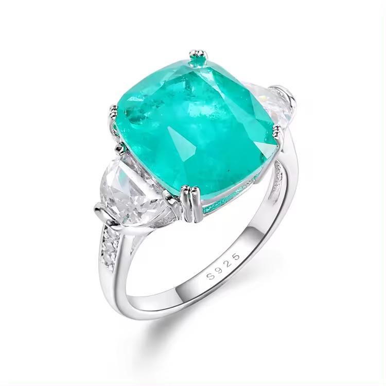 Luxury 925 Silver Cushion Cut Synthetic Emerald Green CZ Engagement Cocktail Luxury Rings