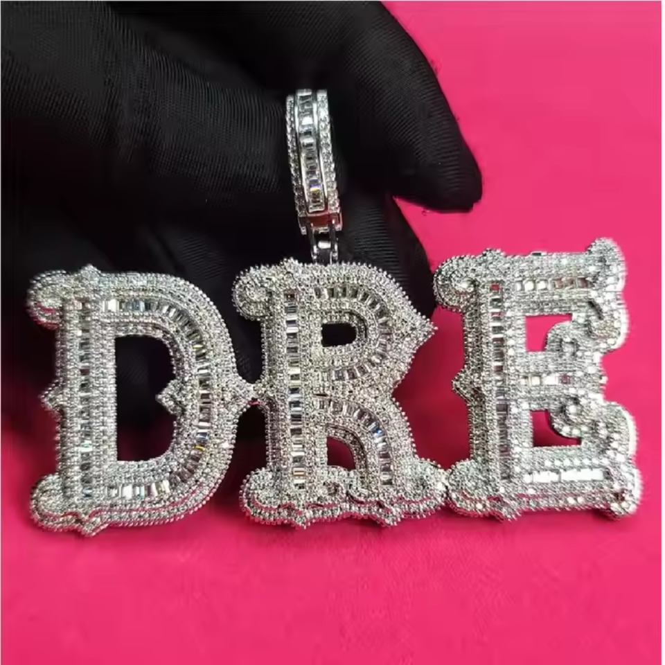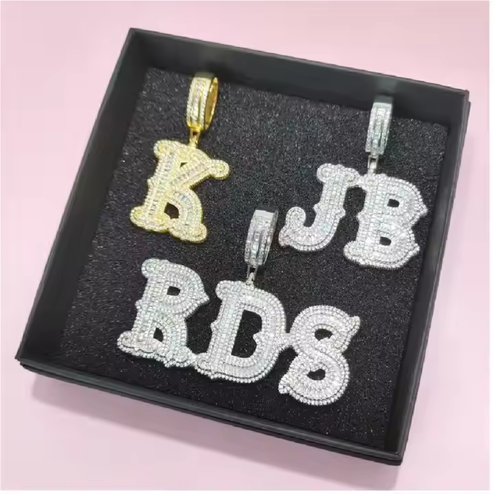 Hip Hop moissanite diamond silver\Gold Plated Letter Luxury Jewelry A-Z 26 Capital Initial Letters Pendant Necklaces