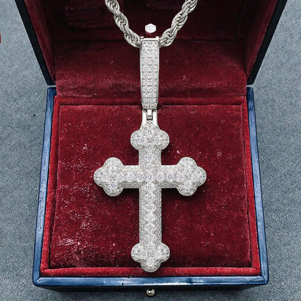 Luxury 925 Sterling Silver Brilliant Cut Moissanite Cross Pendant Bat Wing Logo Gold Plated New Design Hip Hop Jewelry for Men