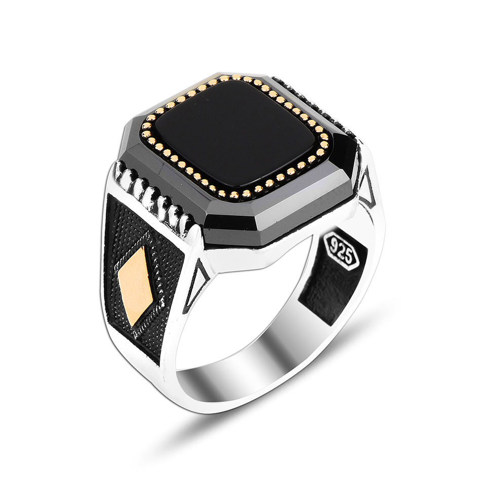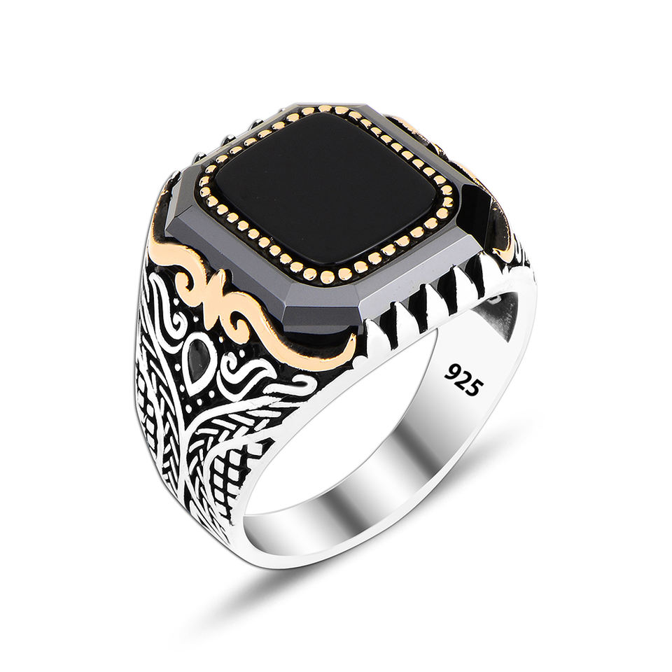 Luxury 925 Sterling Silver Men Ring Black Zircon Ethnic Vintage Art Design Fine Jewelry Wholesale Silver Ring for Men Hot Sales