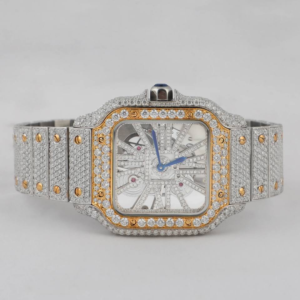 Luxury 925 Sterling Silver Stainless Steel Alarm Mechanical Watch with Glass Dial for Men