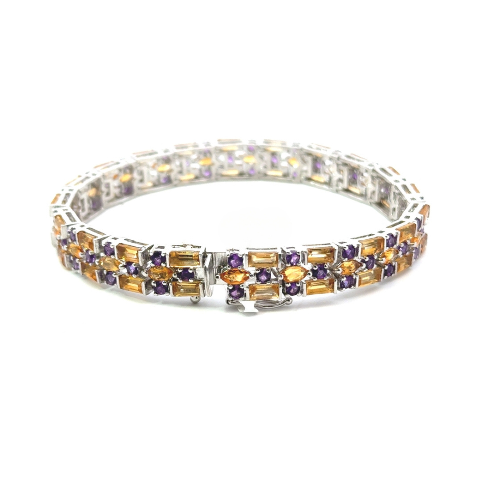 Luxury 925 Sterling Silver Tennis Bracelet Trendy Style Fine Chain Link Genuine Citrine Amethyst Rhodium for Weddings Gift