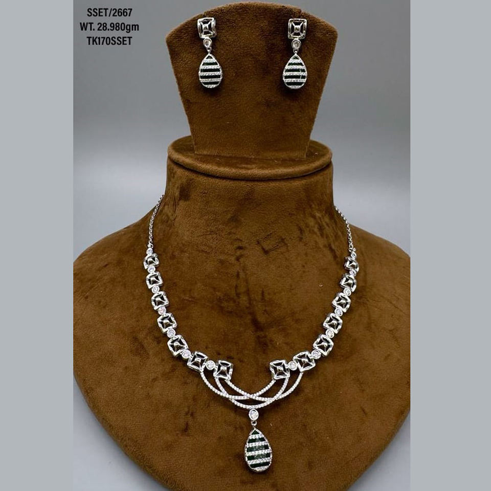 925 Sterling Silver Zircon Jewellery Necklace Earrings Set