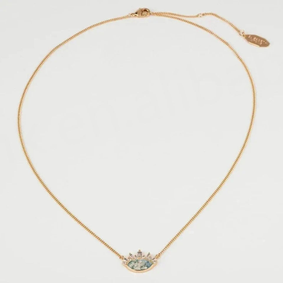 Luxury 925 Sterling Sliver Chain Gold Plated Half Halo Jewelry Eye Shape Pendant Moss Agate Necklace