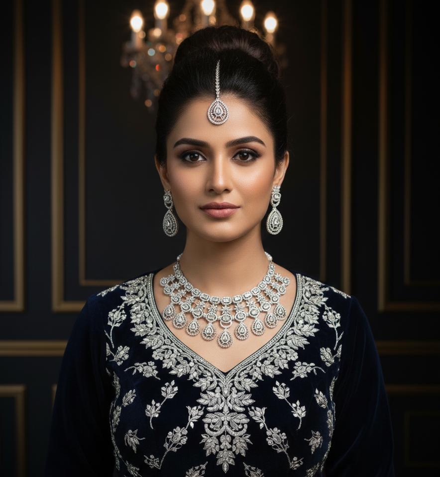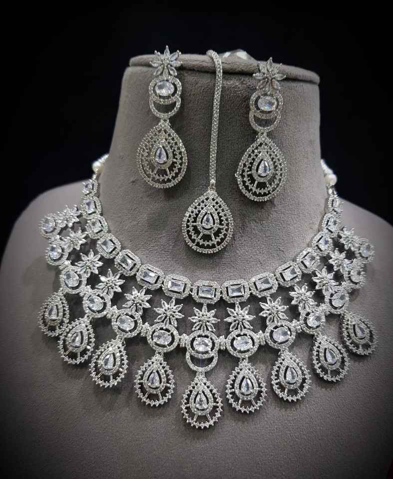 Luxury AD Bridal Necklace and Earrings Set for Women Wedding Partywear Traditional Fashion Jewellery Export High Quality