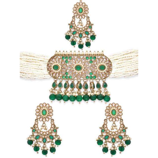 Luxury AD Stone Necklace Set with Earrings in Multiple Colors for Women Bridal Wear Wedding Party Wear Jewelry Set