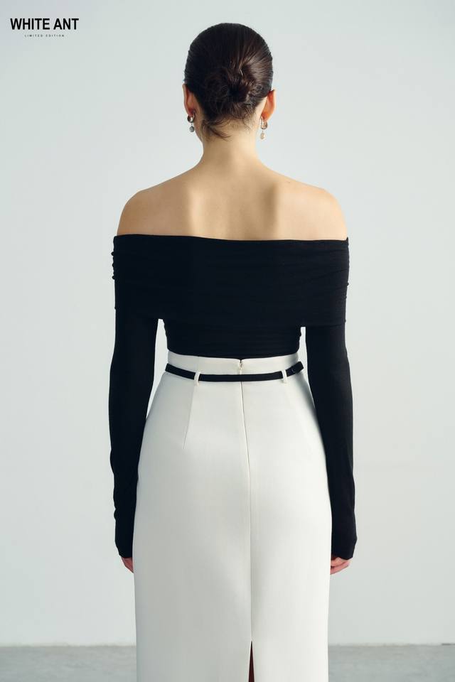 Luxury ADELA MAXI SKIRT Elegant White Long Skirt Matching Belt Rayon Spandex Woven Fabric Women's Skirts Manufacturing Company