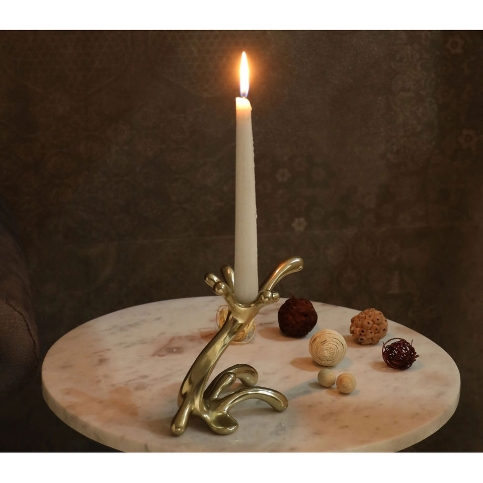 Luxury Abstract Brass Candle Holder Modern Home Decor Golden Metal Art Sculpture Centerpiece Wedding Table Ornament