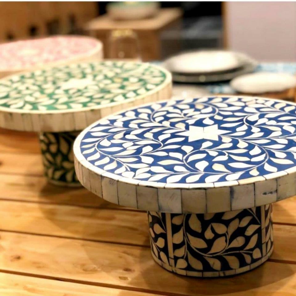 Luxury Acacia Walnut Wood Dessert/Cake Stand Platter Mother Pearl Inlay Mop Animal Chocolate Inlay for Arabic Home Decoration