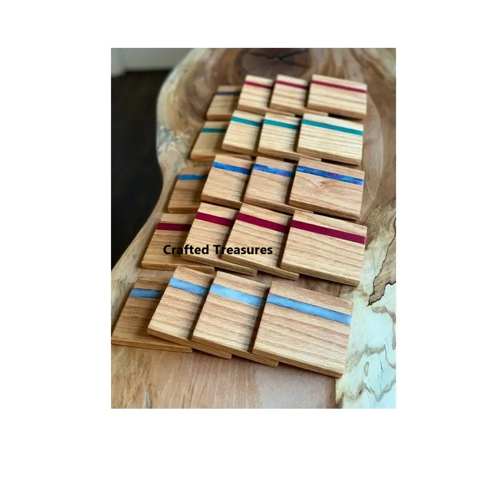 Luxury Accessible Coaster Wood Acacia Creative Pad Modern Solid Wood Acacia Epoxy Resin Coaster Set of 4 Home & Restaurant Use