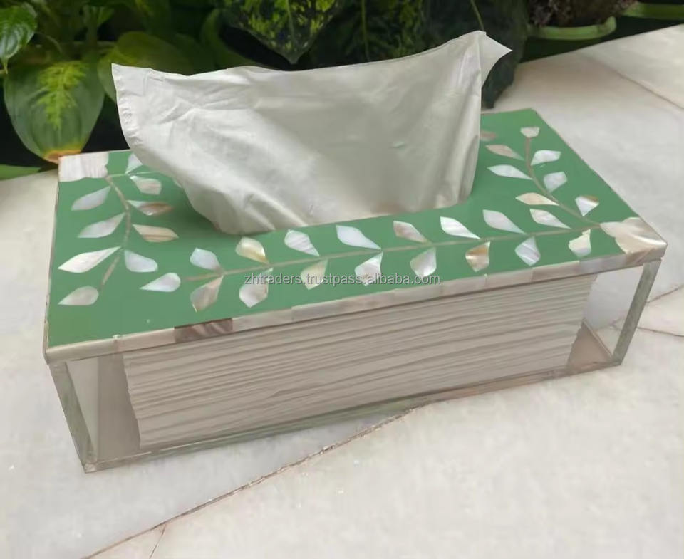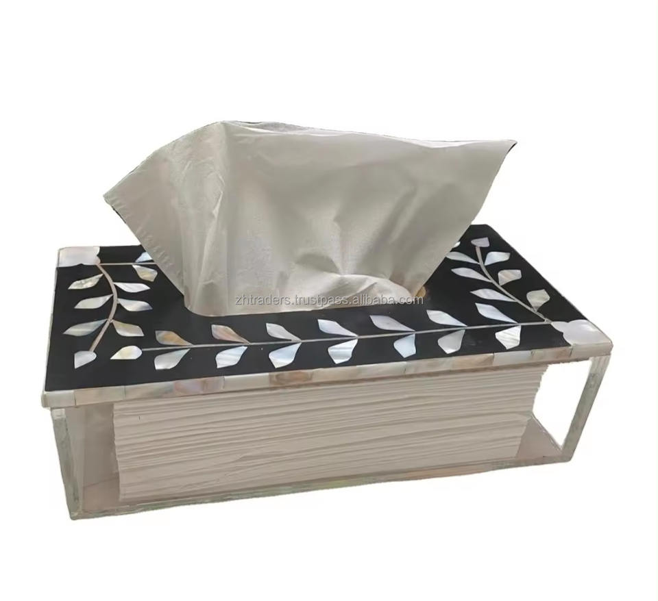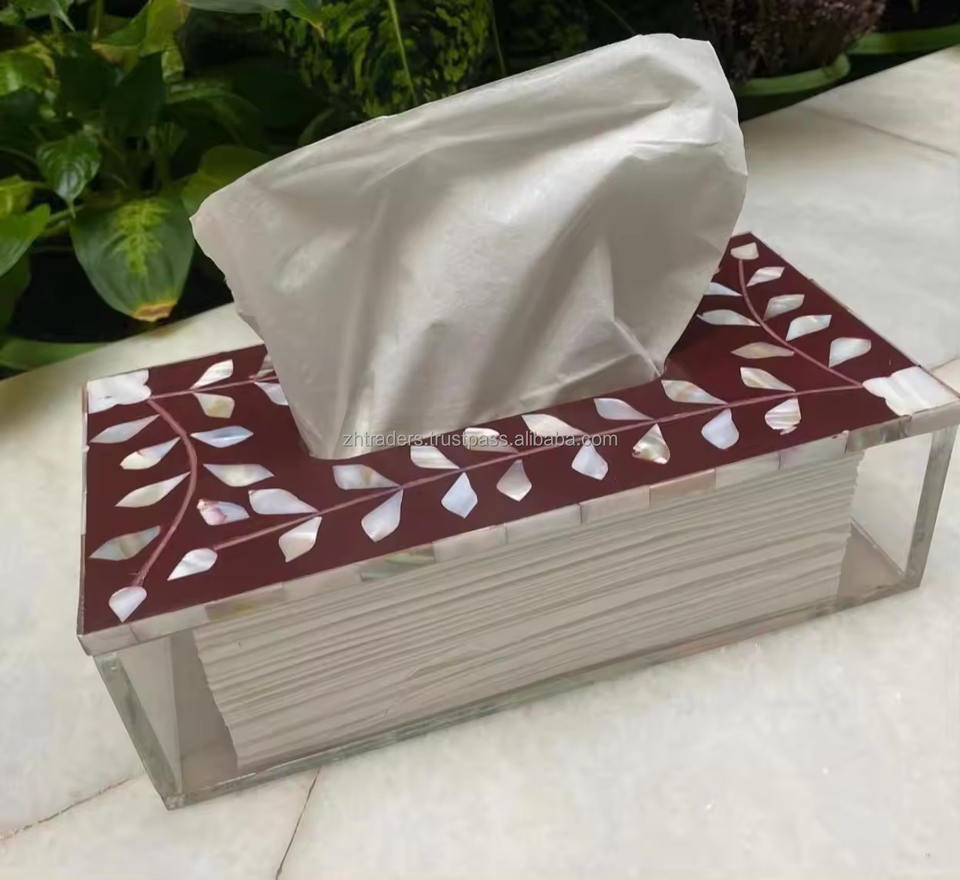 Luxury Acrylic Tissue Box with Mother of Pearl Design High Quality Waterproof Paper Storage Custom Logo