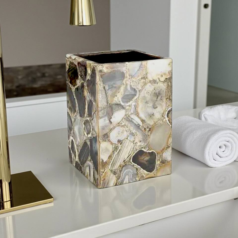 Luxury Agate Marble Five-Piece Bathroom Accessory Set Eco Friendly Waterproof Soap Dispenser Tumbler Tray Jar for Elegant Vanity