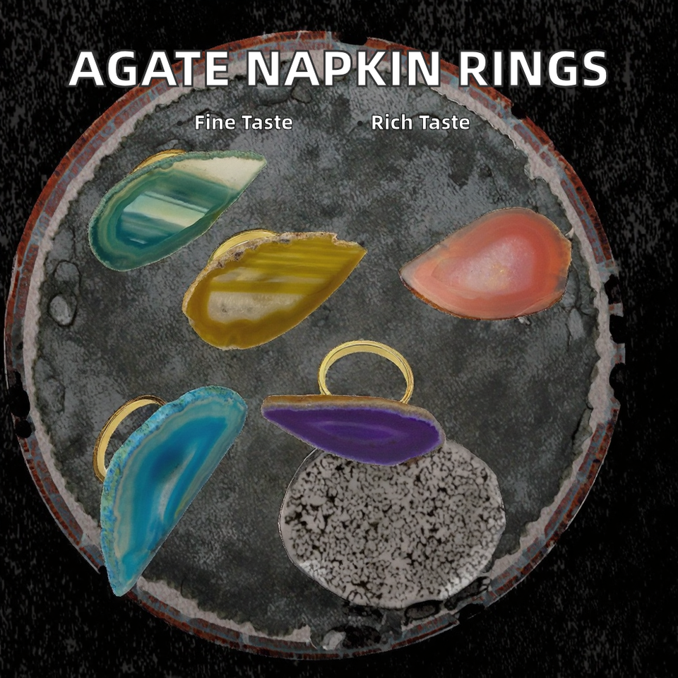 Luxury Agate Stone Napkin Rings for Weddings Stocked Eco-Friendly Tableware Settings with Nature Design Bongo