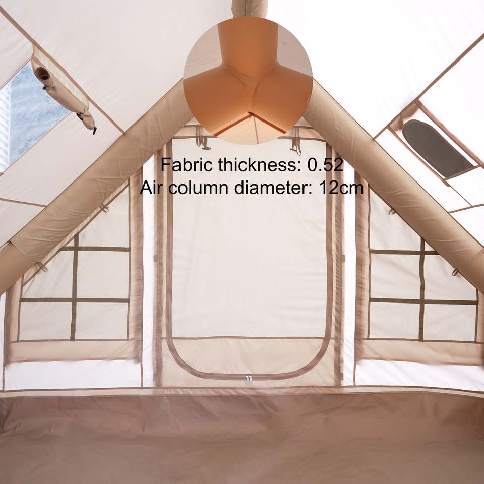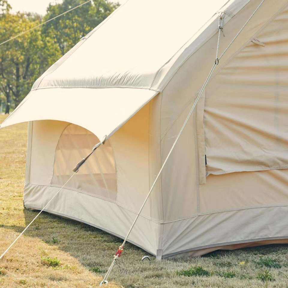 Luxury Air Tent with Hand Pump Easy Setup Waterproof Windproof 4 Seasons Double Layer Oxford Cabin Tent with Mesh Chimney Window