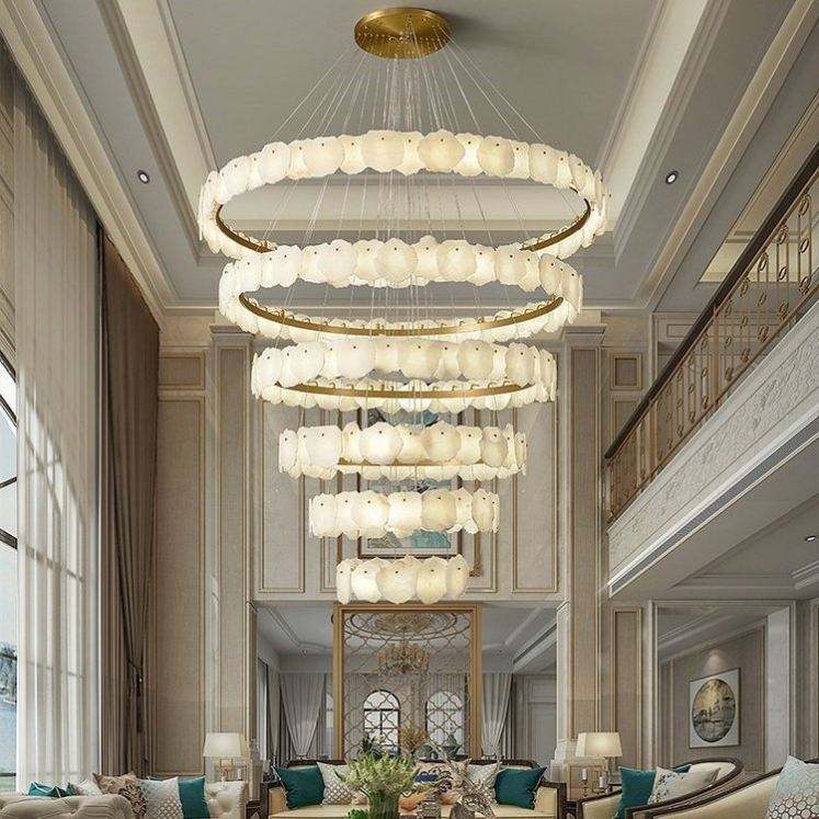 Luxury Alabaster Pendant New Design Spanish Marble Chandelier for Living Room Villa Staircase E26 Small Middle Square Long