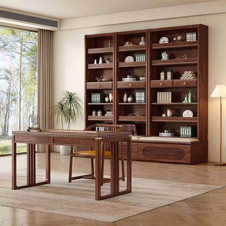 Luxury American Classic Cherry Solid Wood Bookcase Adjustable Home Office Library Bookshelf