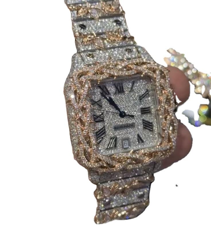 Luxury Antique Business Diamond Crown Moissanite Watch Thorns Stainless Steel Invisible Setting VVS Diamond for Bulk Buy Jewelry