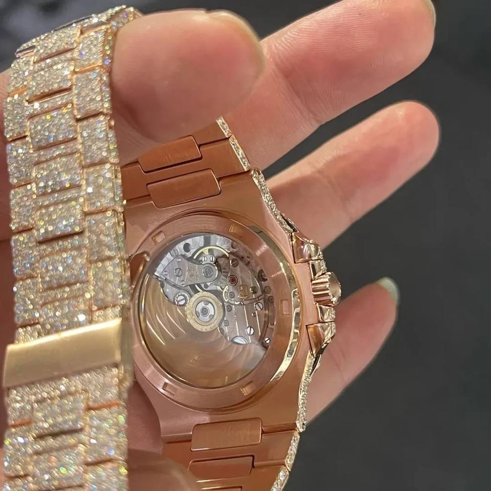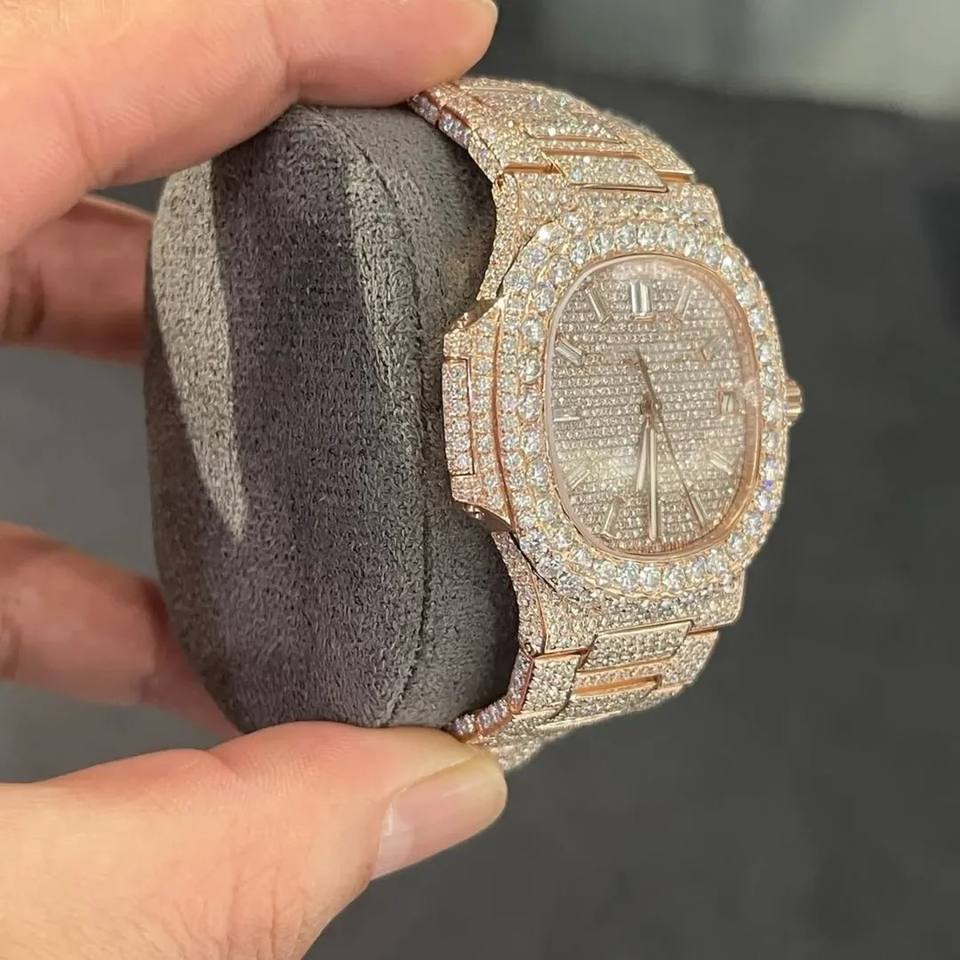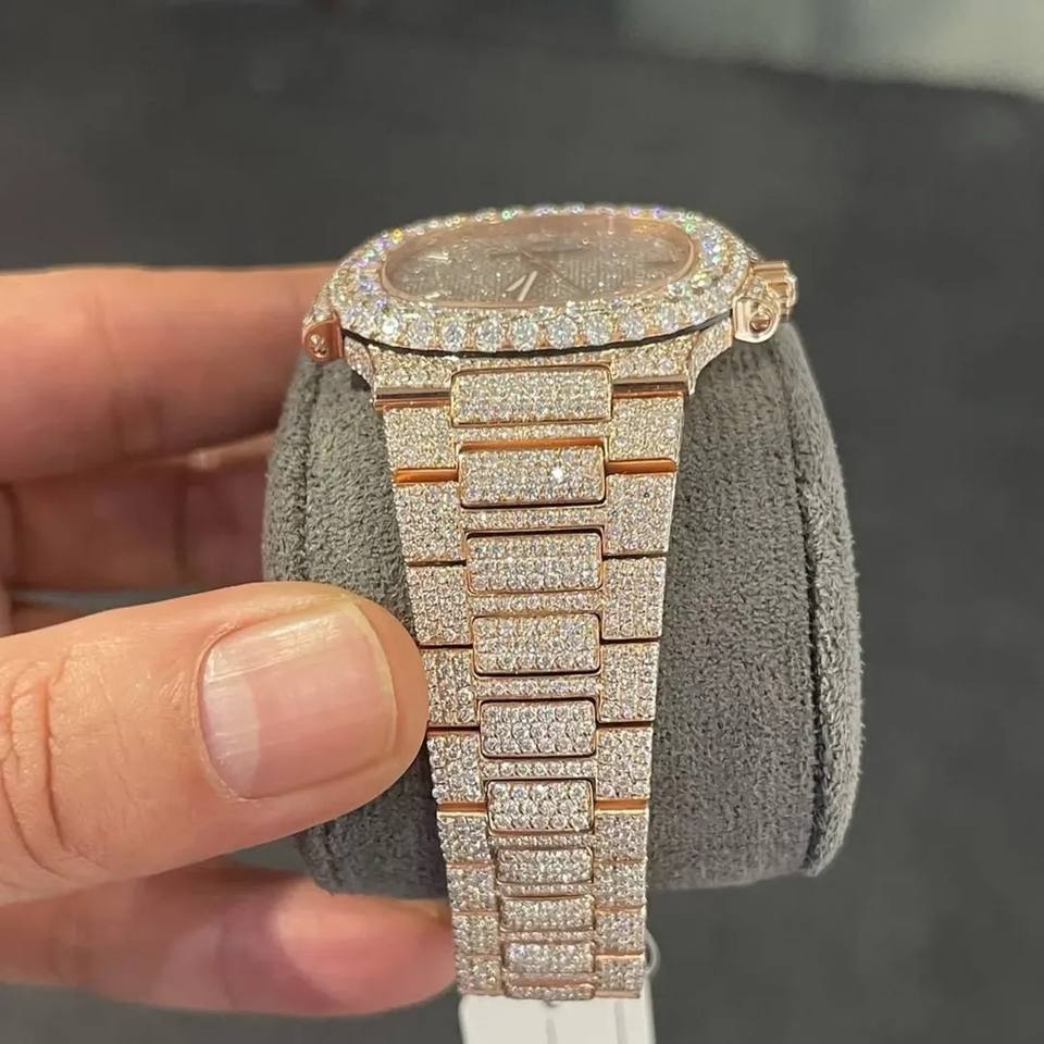 Luxury Antique Fashion Rose Gold Iced Out Automatic Watch Diamond Hip Hop Bust Down Stainless Steel Mechanical Bling Bling