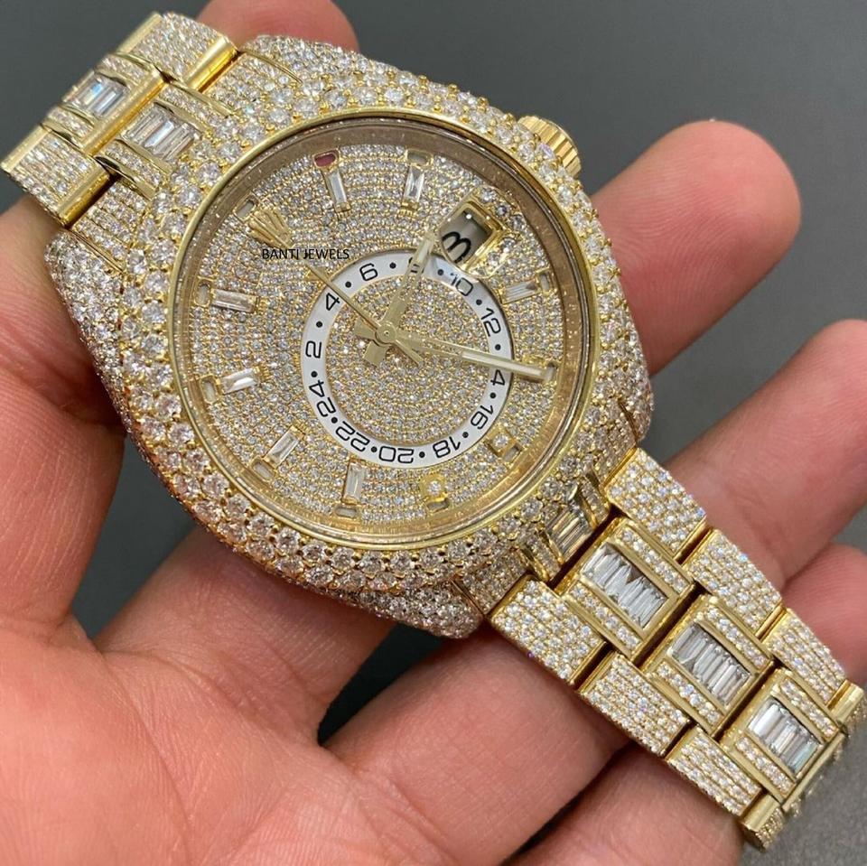 Luxury Antique Gold Iced Moissanite ETA Movement Watch Fully Diamond Set Unisex Stainless Steel Glass Dial 20mm Band VVS Look