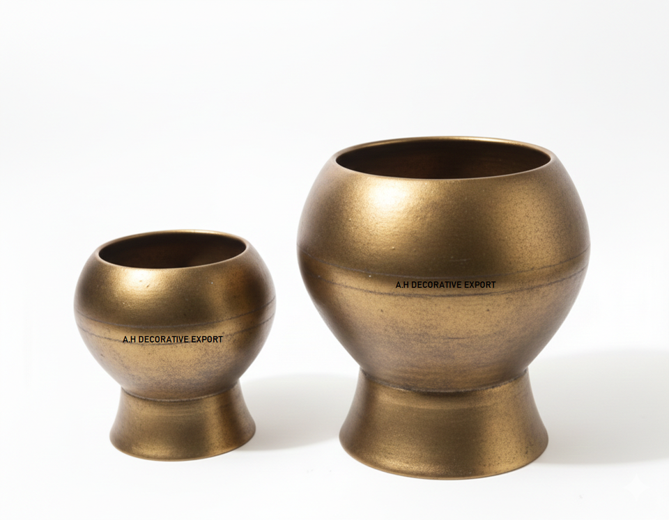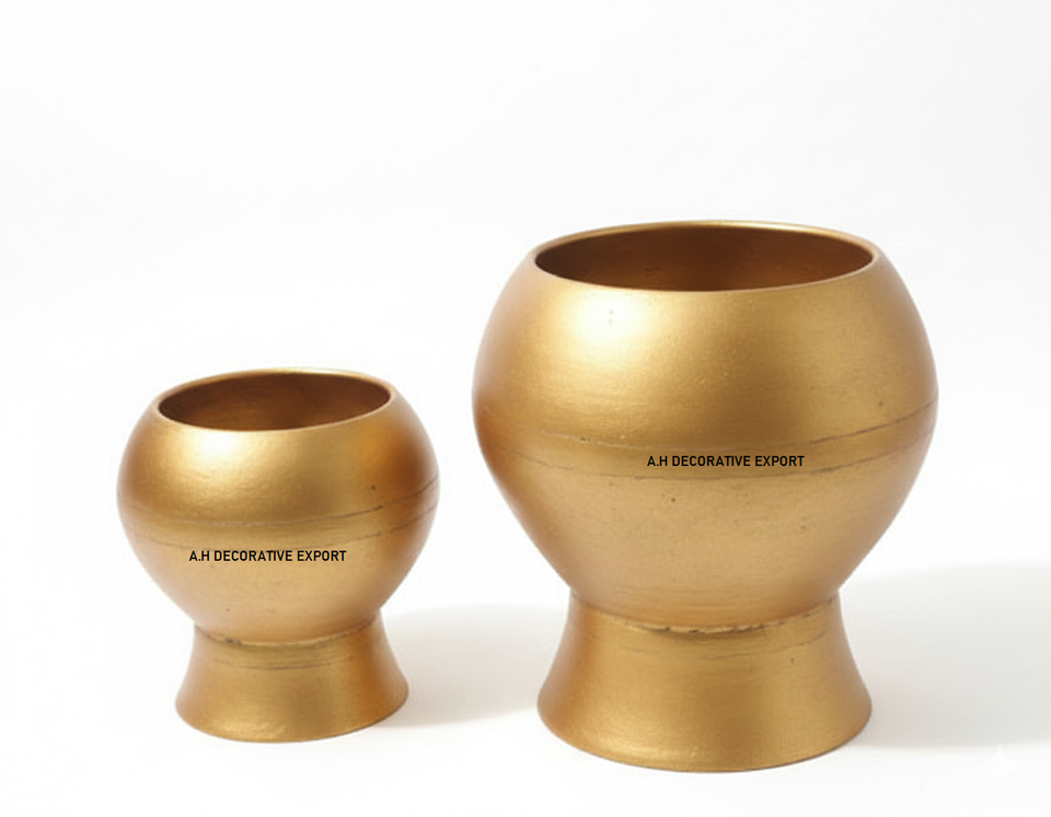Luxury Modern Gold Metal Planter | Satin Gold Pedestal Flower Pots | Glamorous Indoor Garden Decor Living Wedding Tabletop Vase