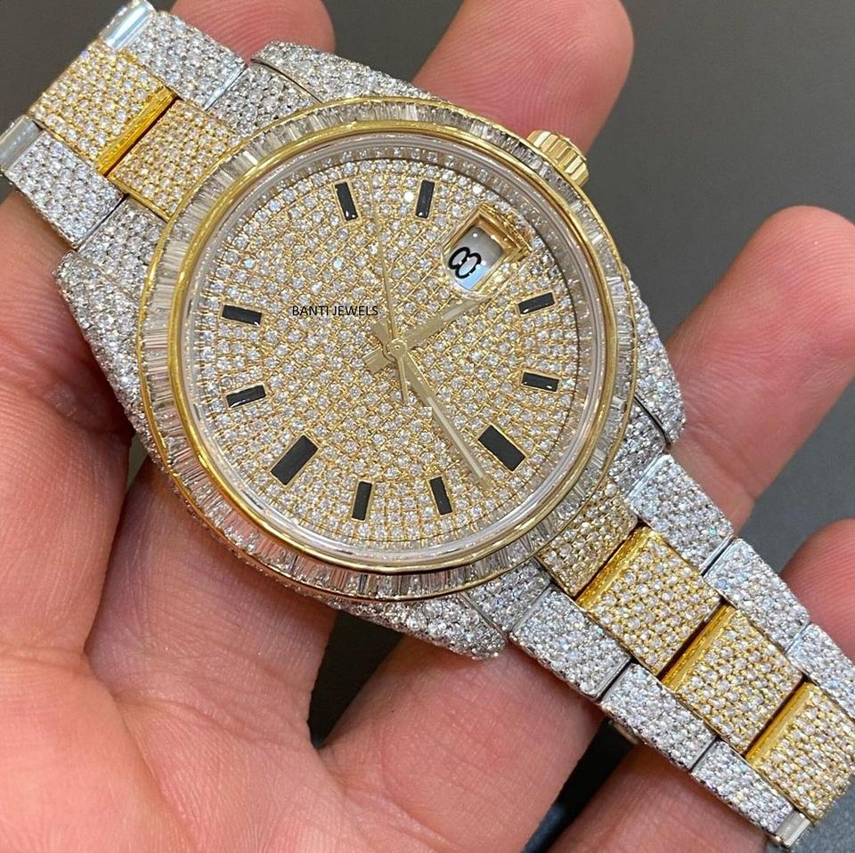Luxury Antique Iced Moissanite Hip Hop Watch Stainless Steel Gold Silver Two Tone Glass Dial VVS Moissanite Diamond Date Dial