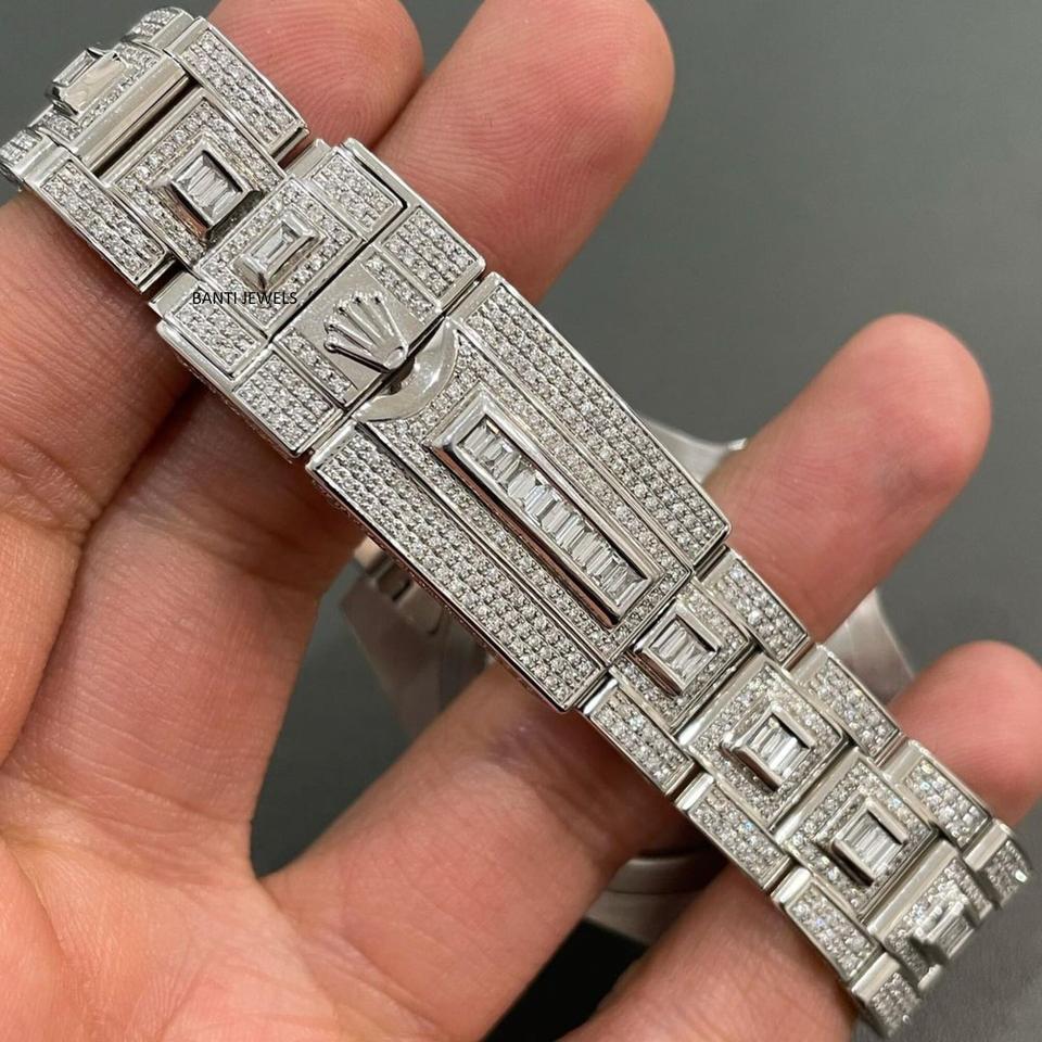 Luxury Antique Iced Out Moissanite Watch Silver Stainless Steel Hip Hop Diamond Style 20mm Glass Dial Timepiece