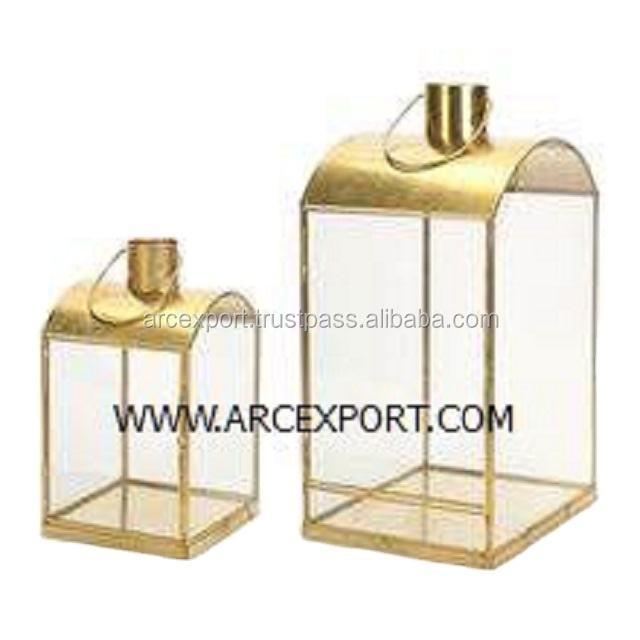 Luxury Antique Metal Gold Color Border Glass Wedding Decoration Lantern Designing Modern Unique Glass Metal Hanging Lanterns