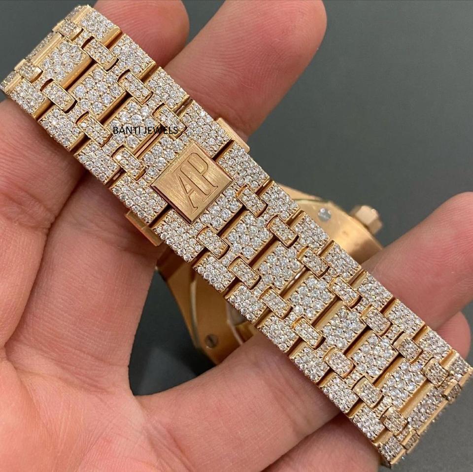 Luxury Antique Stainless Steel Iced Out Moissanite Watch with Rose Gold Bezel Hip Hop Diamond Style 20mm Band