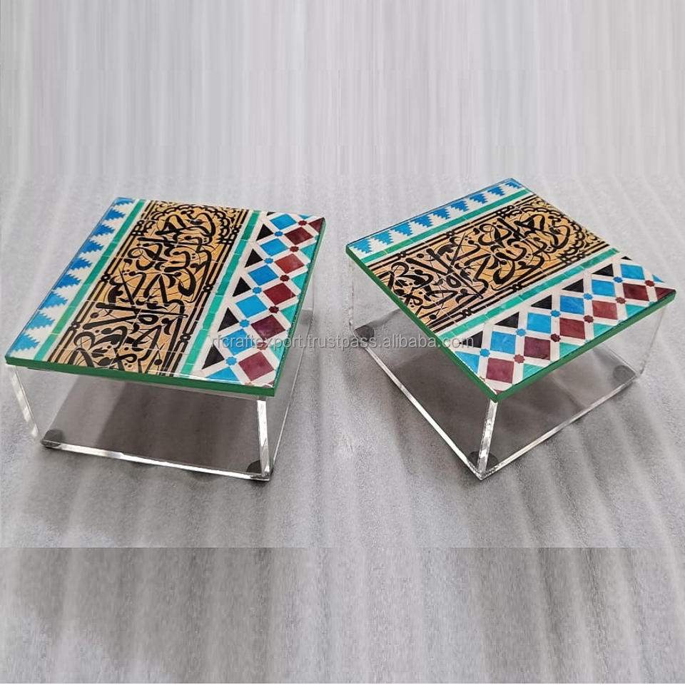 Luxury Arabian Style Eid Ramadan Gifts Wood Mother Pearl Inlay Lid Cover Set Acrylic Boxes Glass India RF Crafts Food Storage