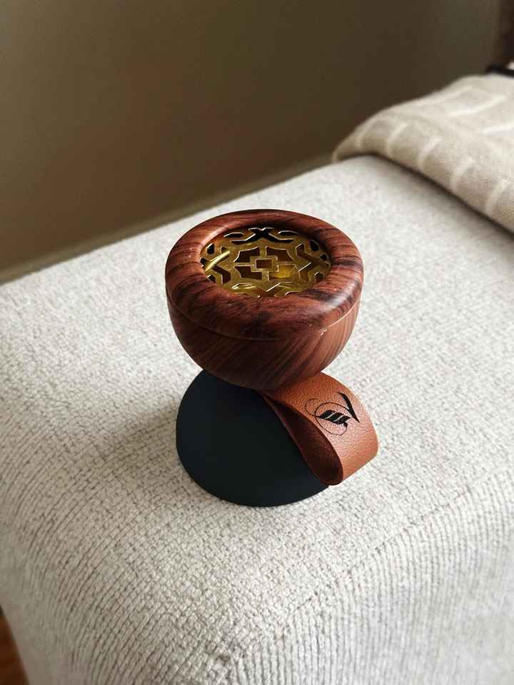 Luxury Arabic Wooden Bakhoor Burner with Brass Lid and Leather Handle Modern Oud Incense Holder for Home & Gifting