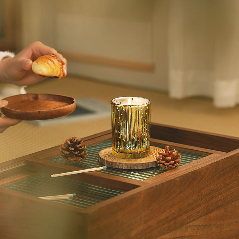 Color:Glass cup: Black, gold Wax color: Natural white