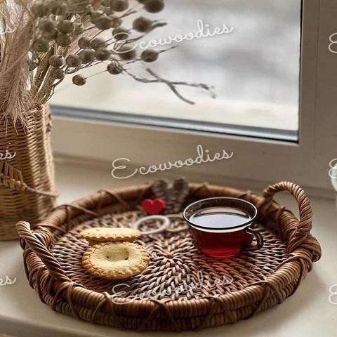 Keyword:Tray With Handles Hand Woven Round Rattan Tray Gift Item