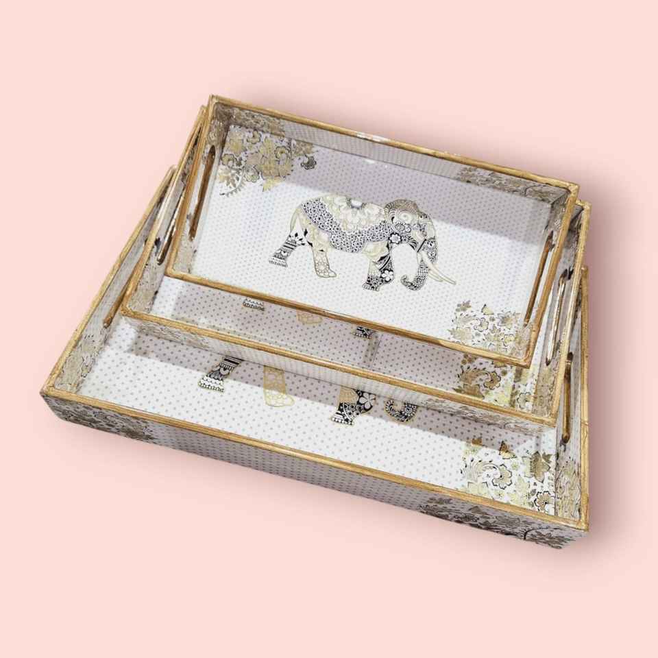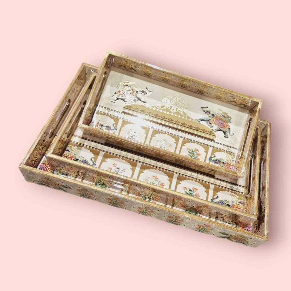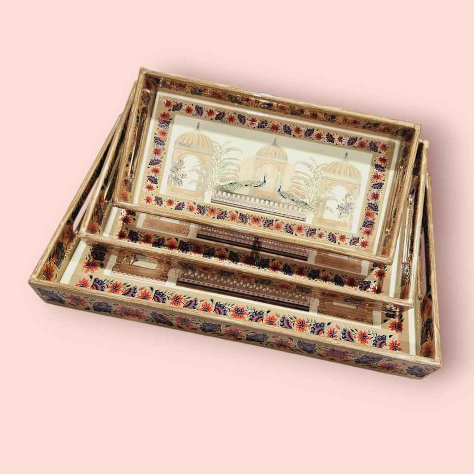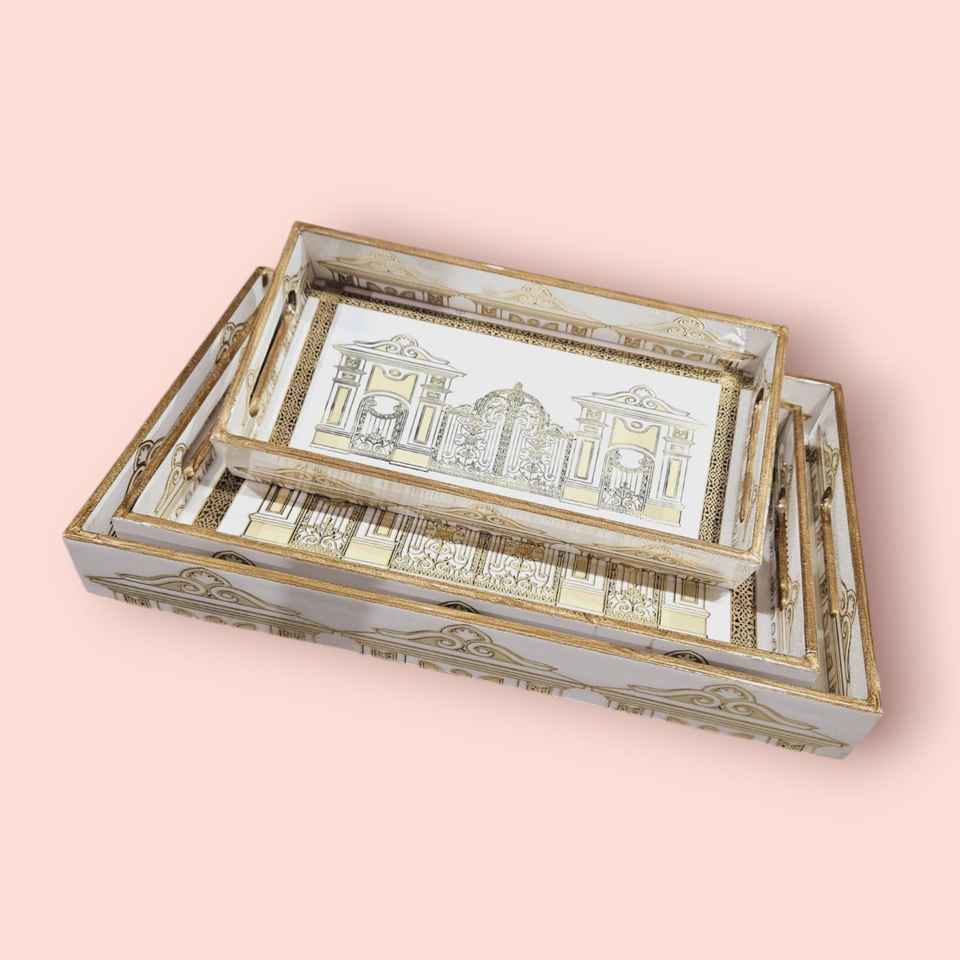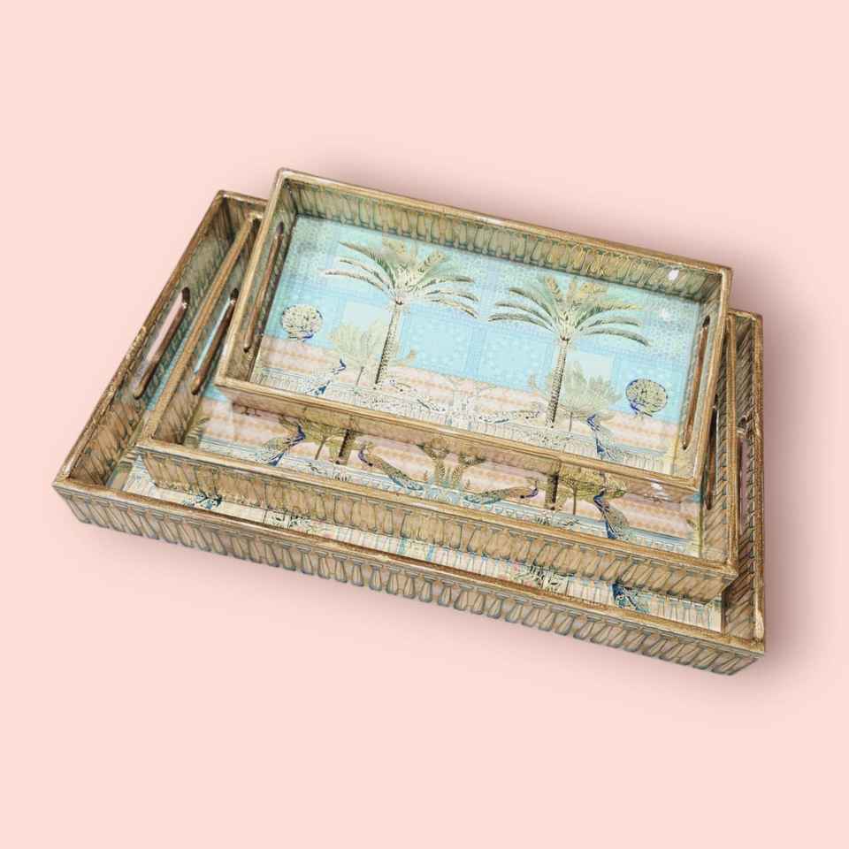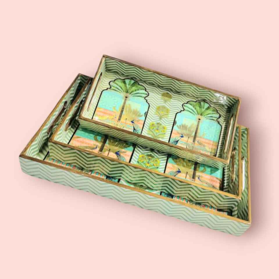 Luxury Art Deco Plant Pattern Eco-friendly Wooden Serving Trays Set-Multi-piece Home Decor Gift