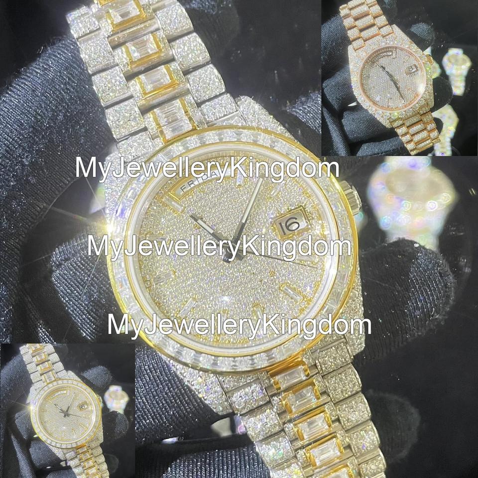 Luxury Automatic Mechanical Moissanite & Stainless Steel Sport Watch for Men Women Case 10 Bar Water Resistant Iced VVS D Color