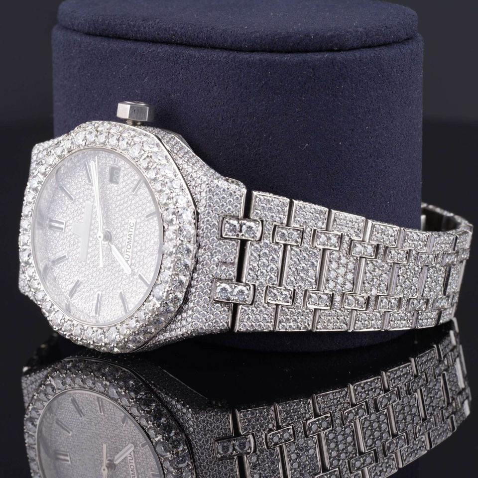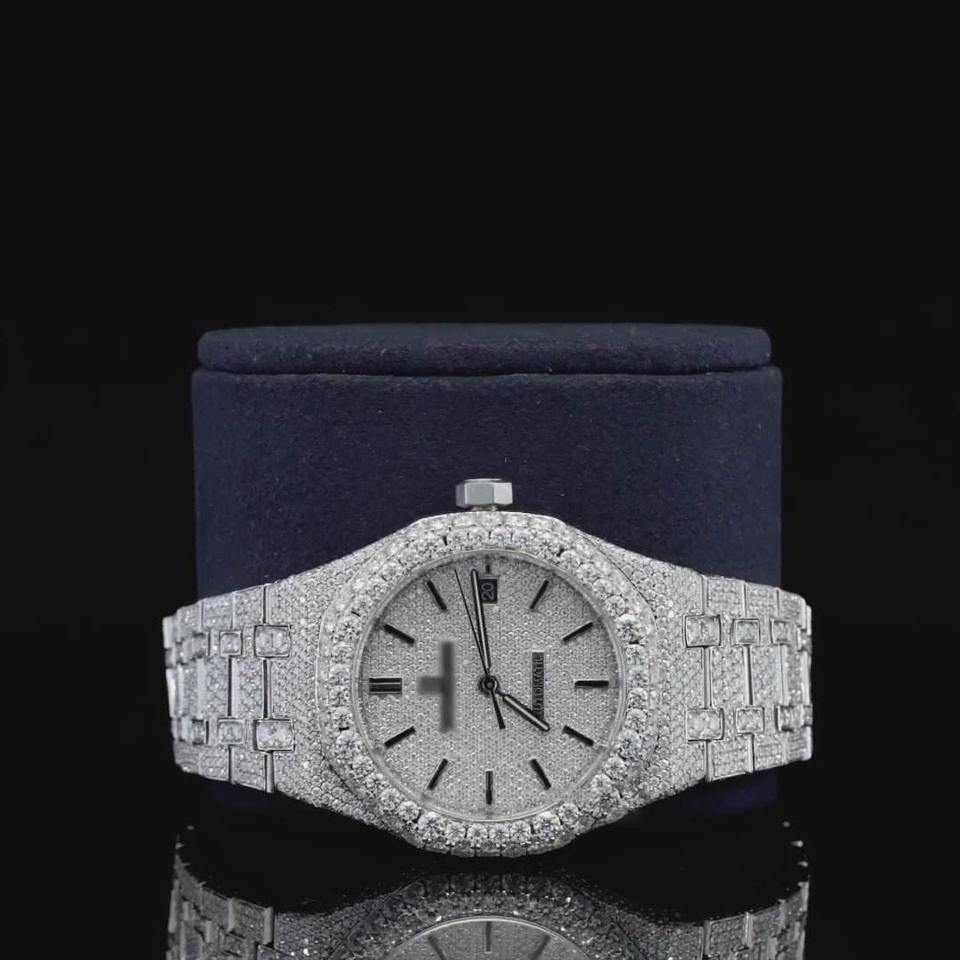 Luxury Automatic Mechanical Watch 41mm Stainless Steel Analog Display Iced HPHT Lab Grown Diamond Water Resistant Limited