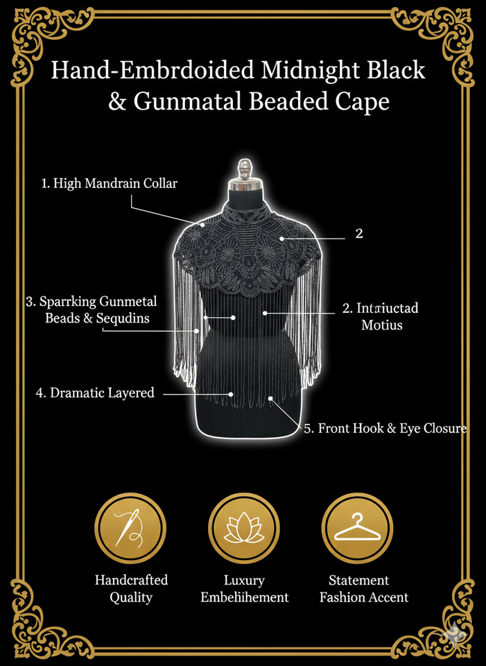 Luxury Beaded Fringe Shoulder Cape Embroidered Elegant Overlay for Women Evening Formal Party Wear Export Quality Collection