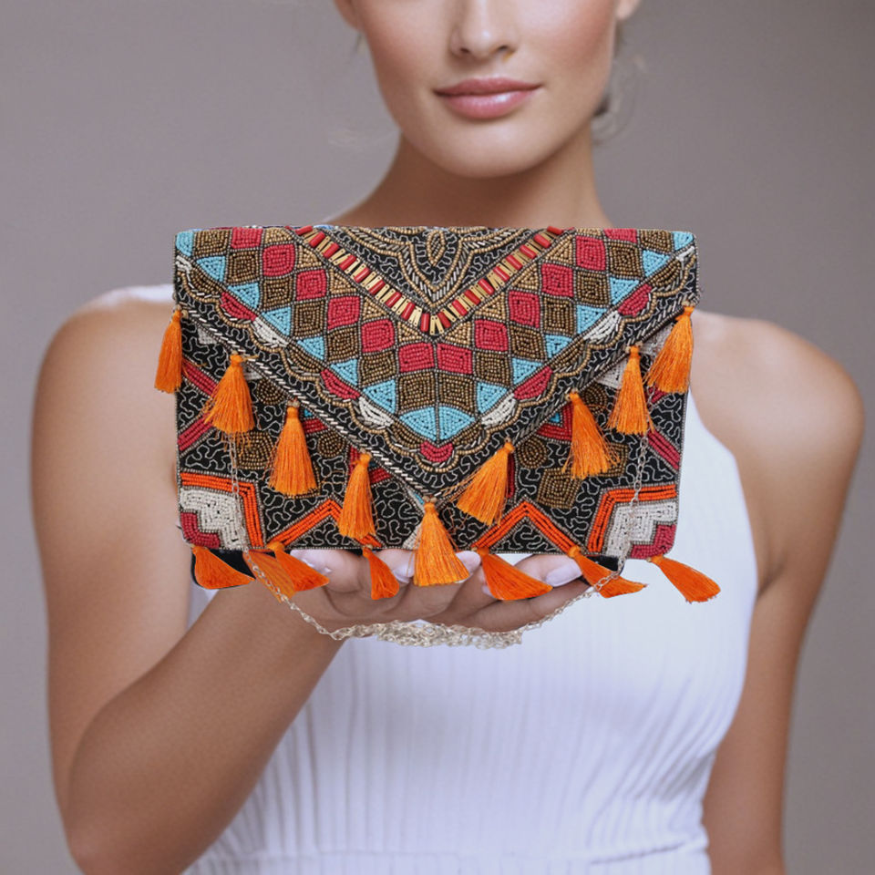 Luxury Beaded Handbags for Ladies Handmade Top Handle Bag with PVC Lining and Zipper Closure Made in India 2025