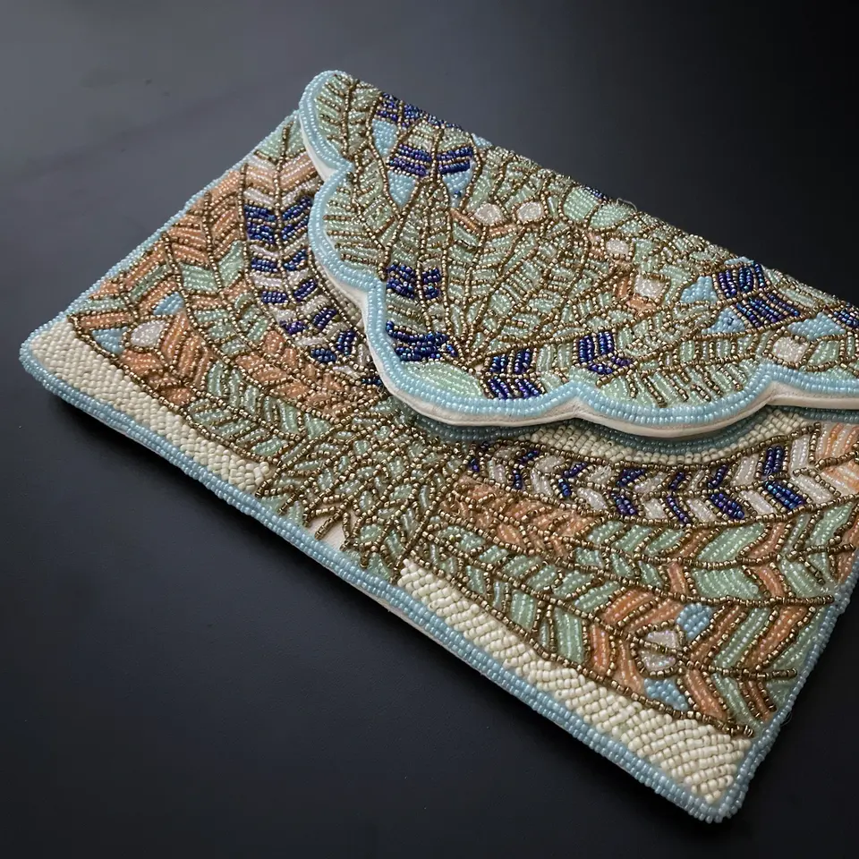 Luxury Beaded Shoulder Bag with Super Design Handcrafted Summer Resort Purse Vibrant Purple and Turquoise Party Wedding Clutch