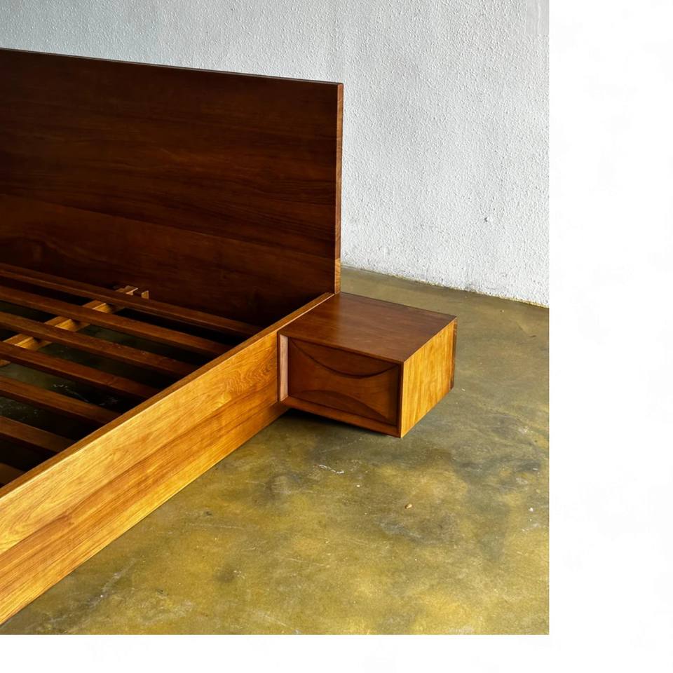 Luxury Wooden Beds with Floating Bedside Cabinet