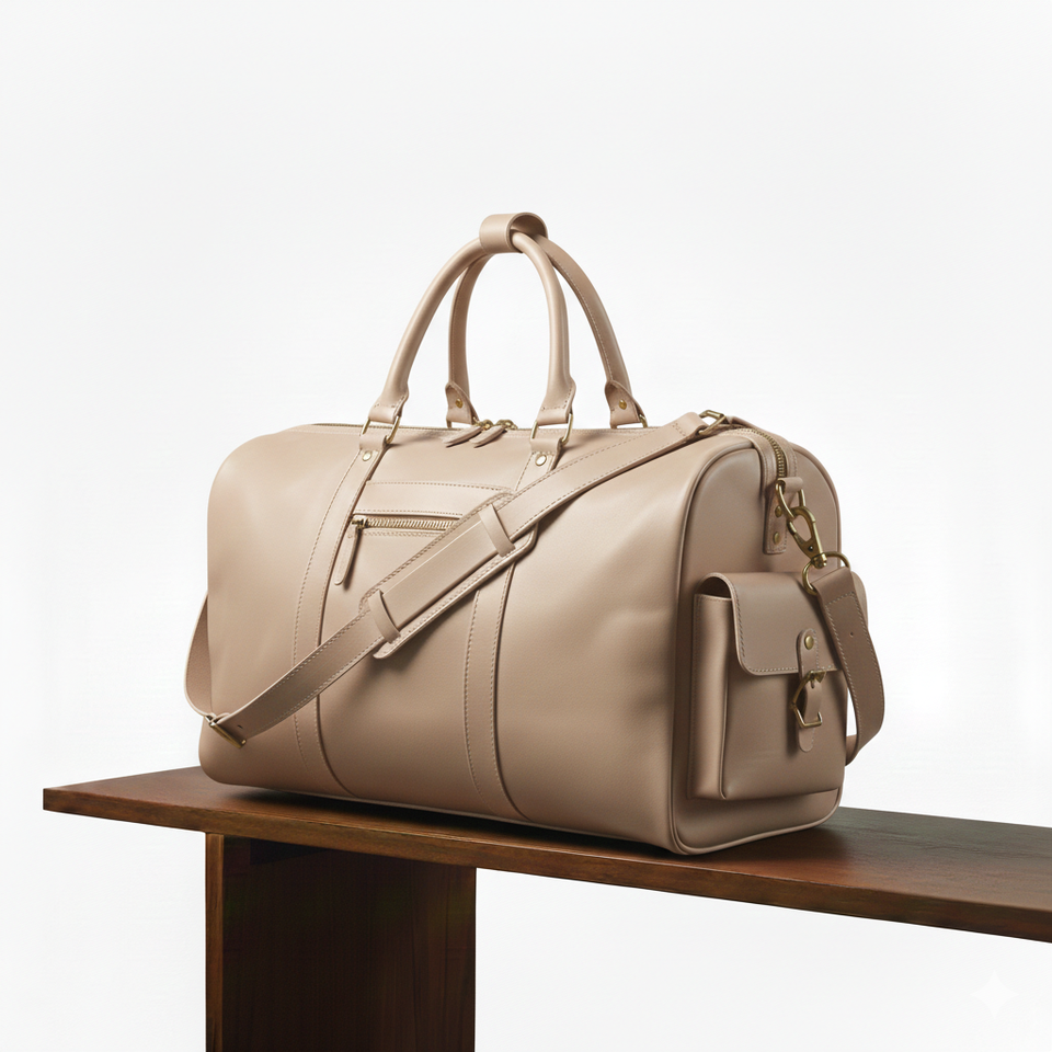 Luxury Beige Cotton Zipper Lightweight Travel Duffel Bag with Adjustable Shoulder Strap and Elegant Handheld Design