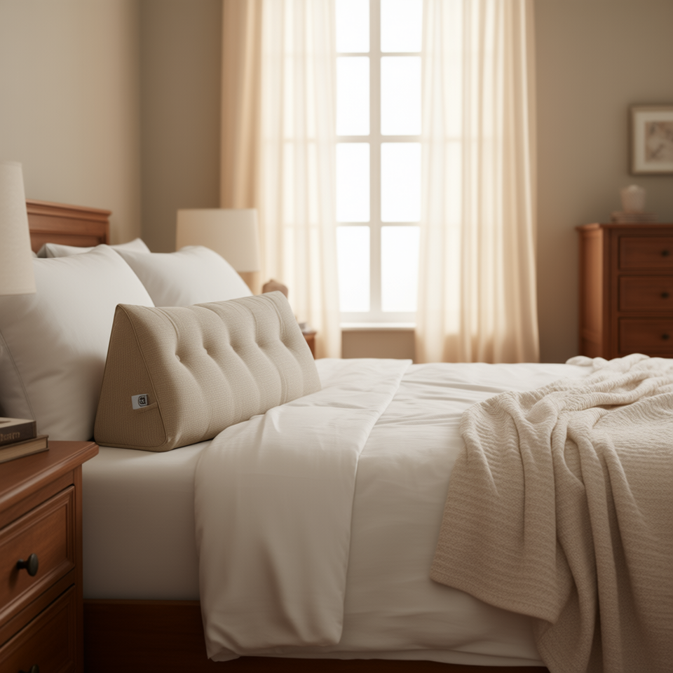 Luxury Beige Triangular Wedge Pillow With Memory Foam Filling For Bed Reading And Massage Support By Db