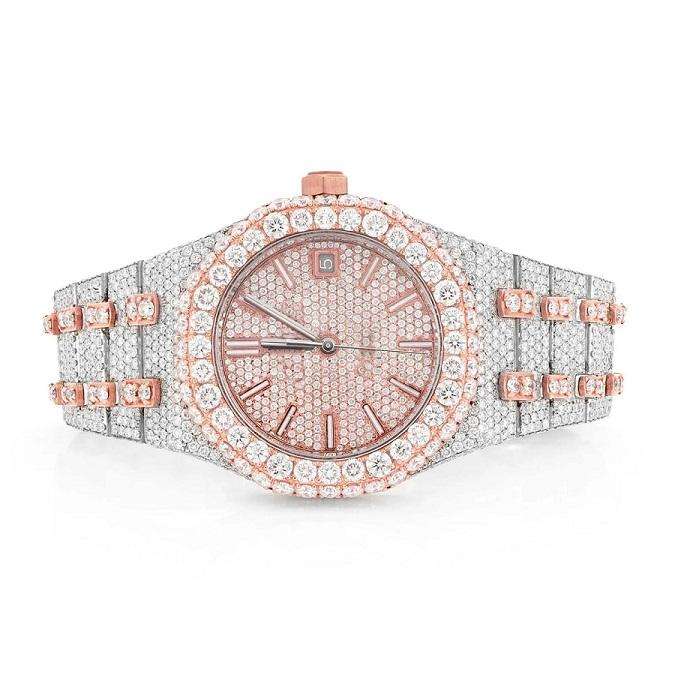 Luxury Best Quality VVS Moissanite Diamond Mens Watch White Rose Gold Plated Stainless Steel Roman Hip Hop Sport Fashion