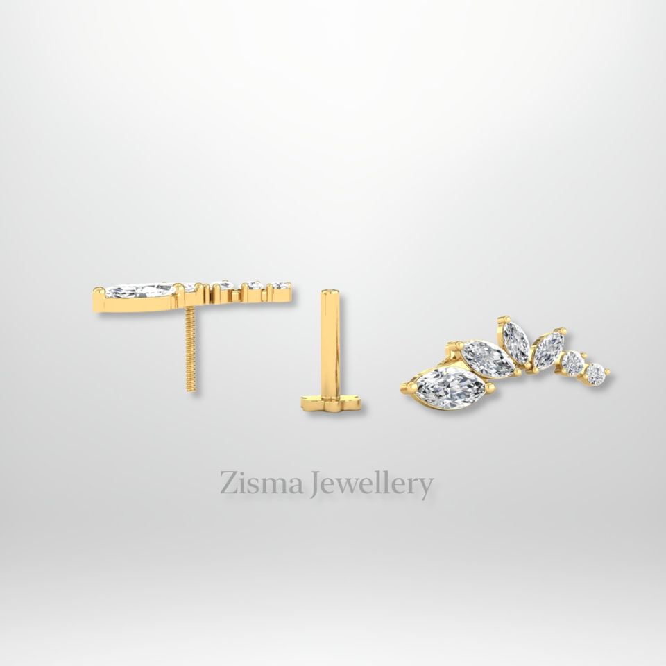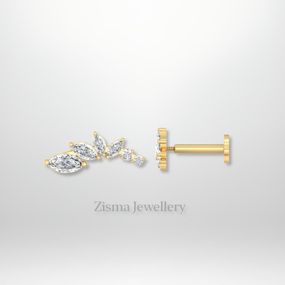 Luxury Best Seller Women's Ear Climber Piercing Stud Earrings 14K 18K Solid Gold F-G Brilliant Cut Natural Diamonds IGI GIA