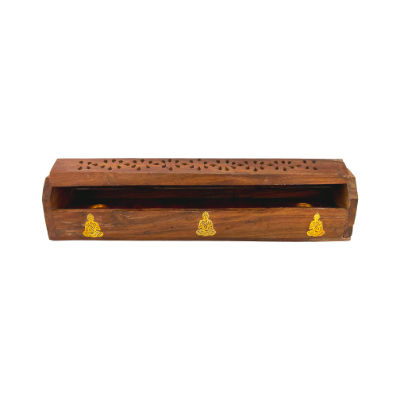 Best Selling Janik Art Crafts Luxury Handmade Eco-Friendly Indian Wooden Incense Holder Storage Box Buddha Brass Inlays